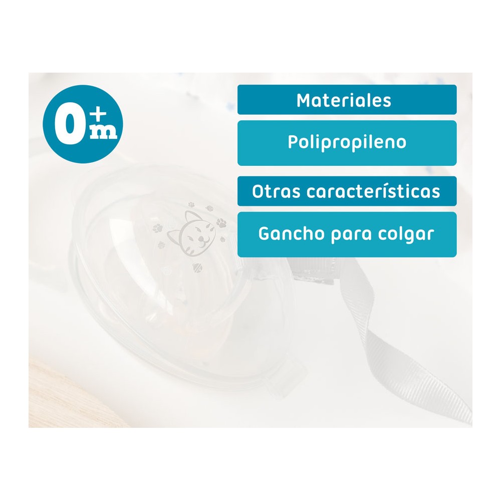 Porta chupetes con precioso diseño a juego con el chupete anatómico, Sujeta chupete y el biberón Gato.