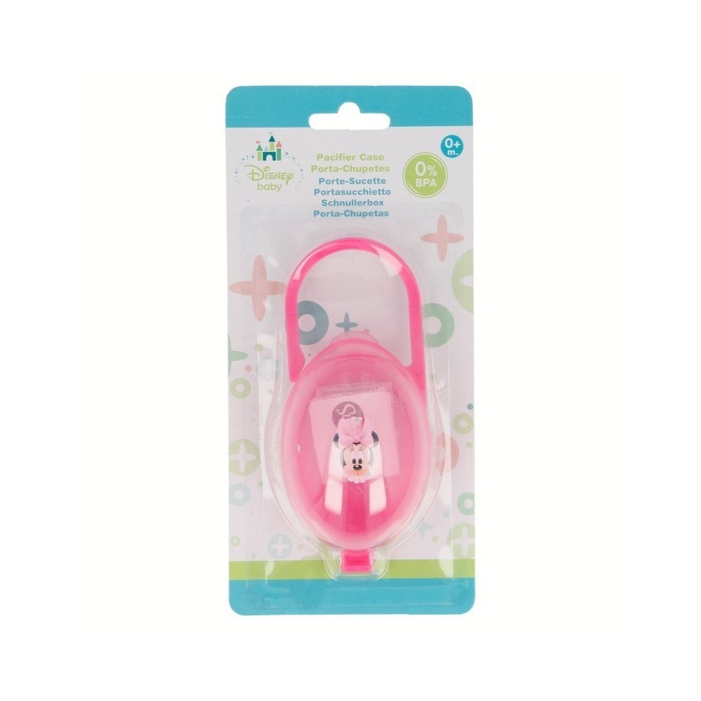 Porta chupetes con precioso diseño de Minnie Disney a juego con el chupete anatómico, Sujeta chupete y el biberón .