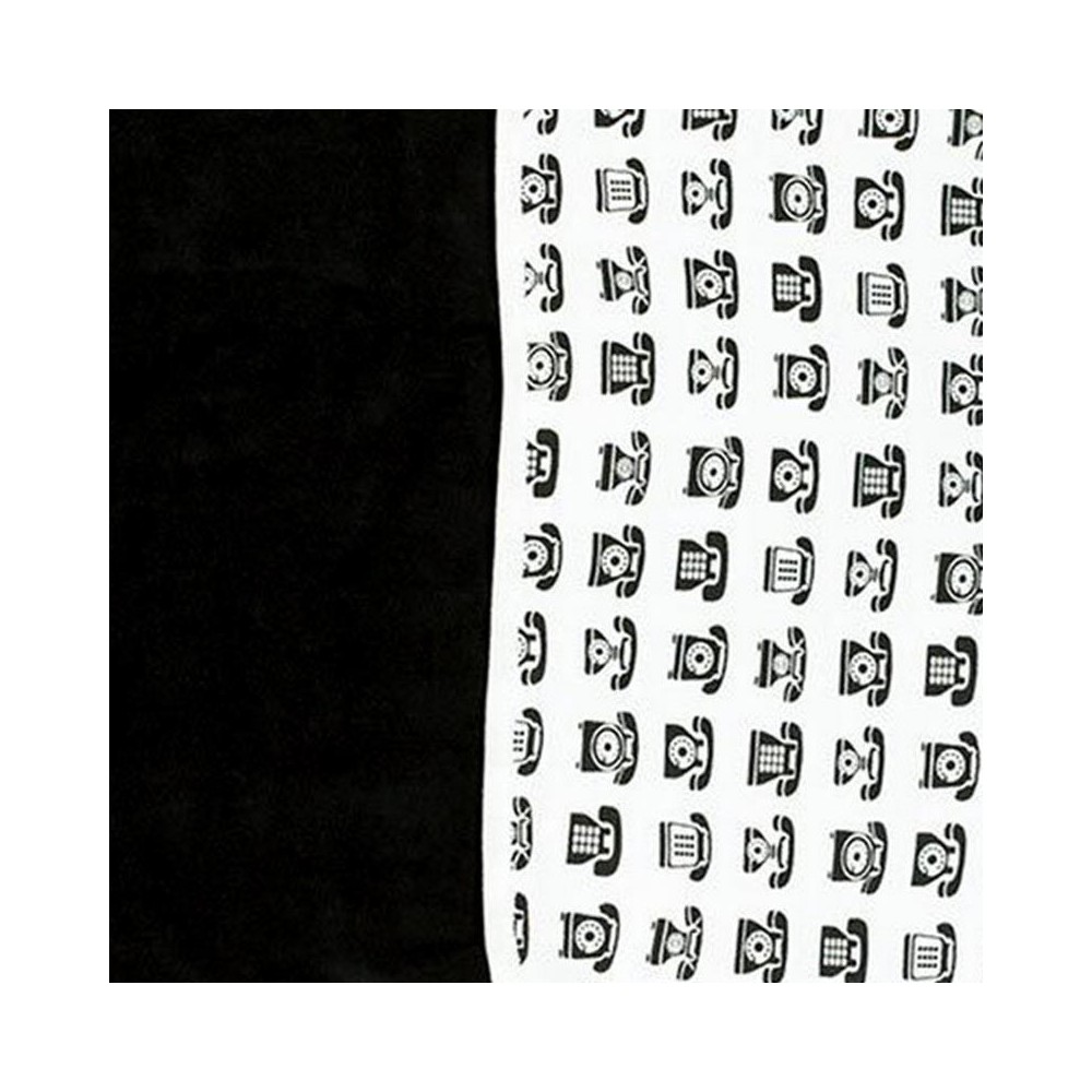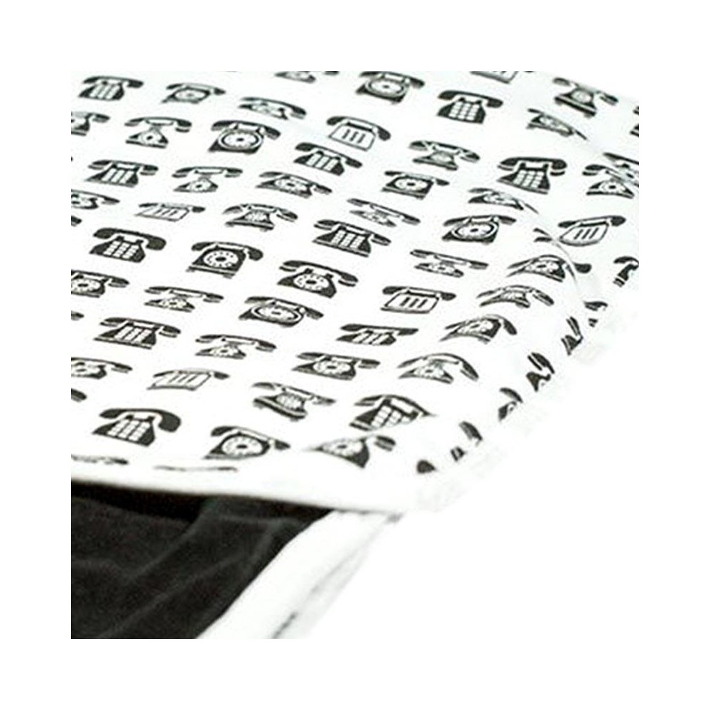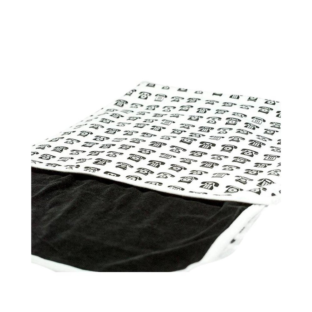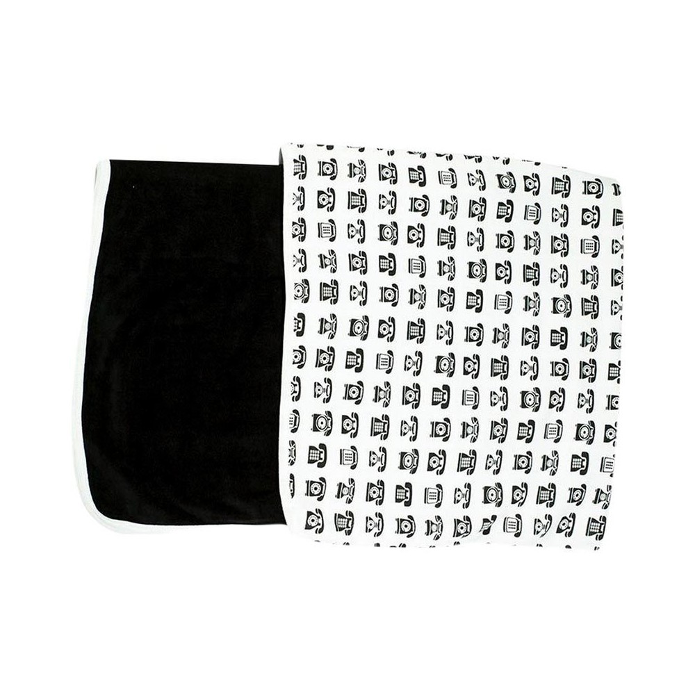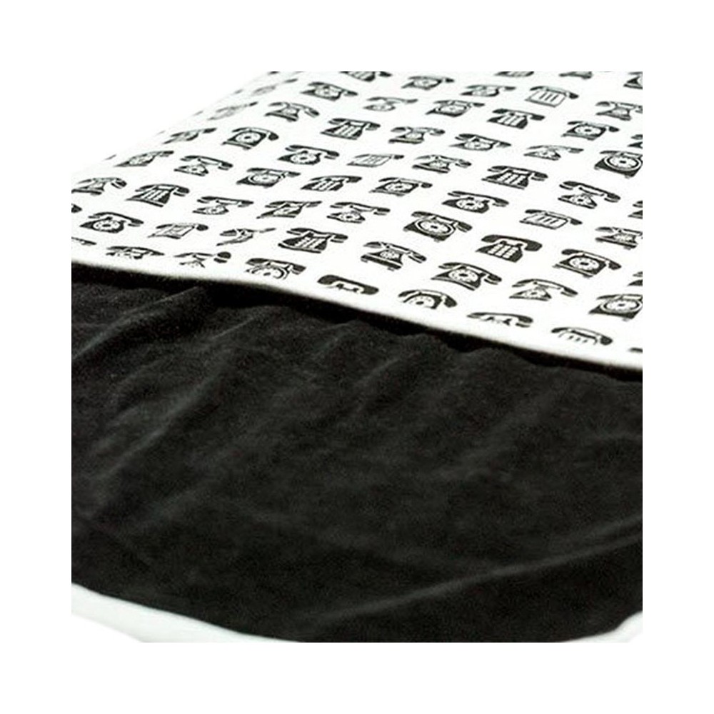 Manta reversible con un exclusivo diseño de «Call Me», estampada con teléfonos en color blanco y negro y a su reverso en color negro en un suave y aterciopelada textura que a los bebés les encantará.
