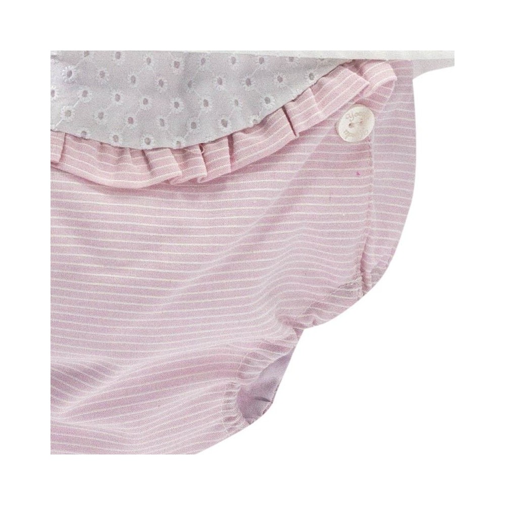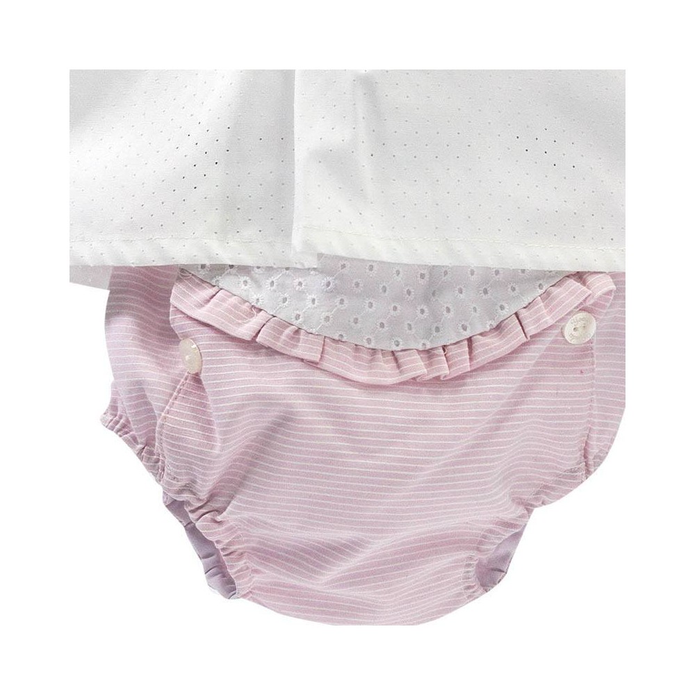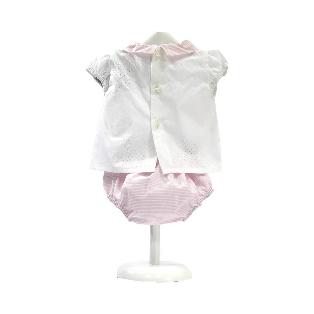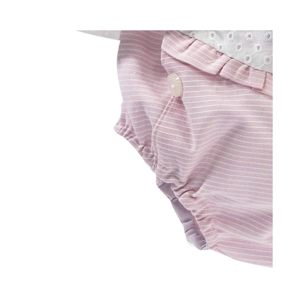Elegante conjunto de ropa de bebé para niñas, fresco y delicado. Especial para el verano con preciosos detalles borbados, en relieve y de altísima Calidad.