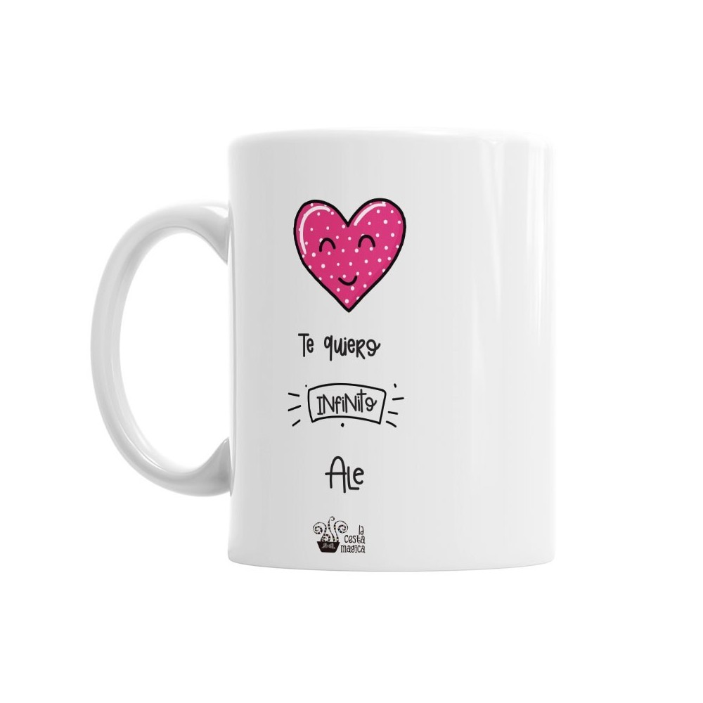 Recuerda que podrás poner el o los nombres para personalizar esta Taza activando el botón»personaliza».