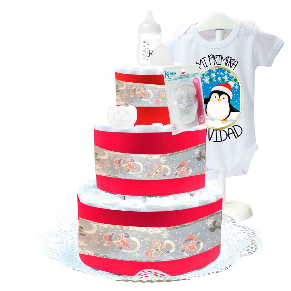 Tarta de Pañales Mi Primera Navidad Pinguino
