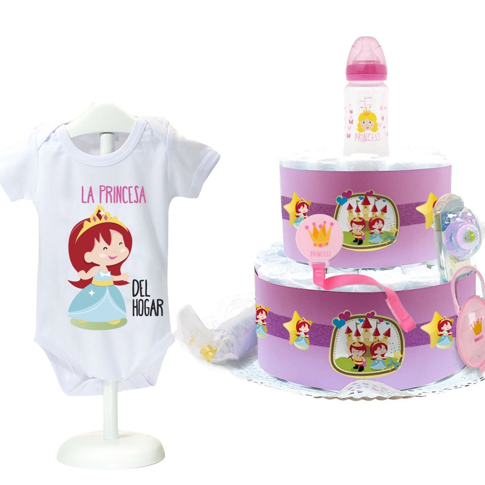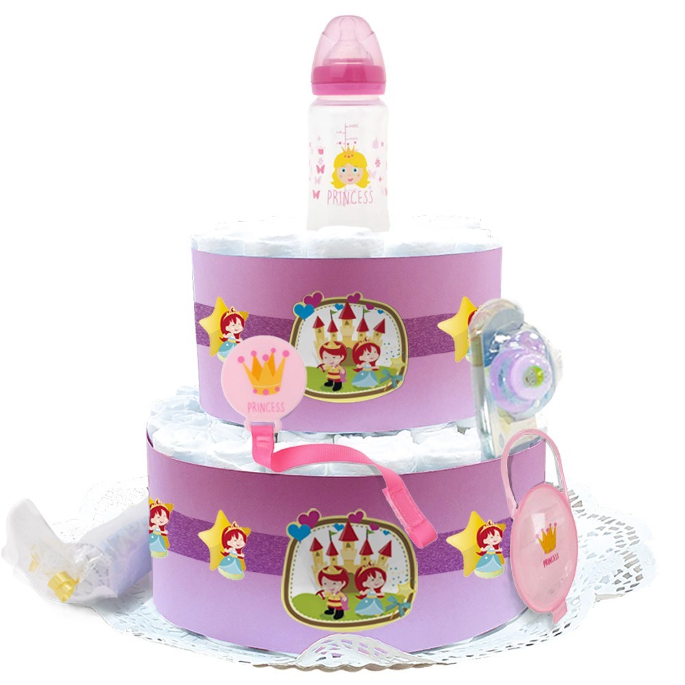 Esta Tarta de Pañales Princesa contiene dos pisos de pañales, con una altura de 50 cm., decorada completamente con los colores Originales de Princesa de La Cesta Mágica, productos de Primera Calidad y de excelente cuidado para nuestro bebé.