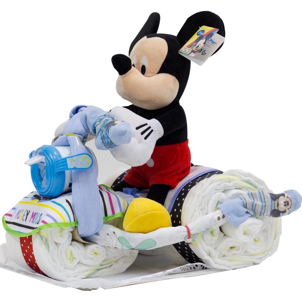 Elige dar un regalo que sea tan práctico como encantador. La Tarta de Pañales Triciclo Mickey es la opción perfecta para celebrar los momentos más dulces de la vida, aportando un toque de magia Disney a la cotidianidad de los nuevos padres y su bebé. ¡Prepara para sorprender y encantar con un regalo inolvidable!